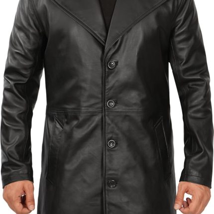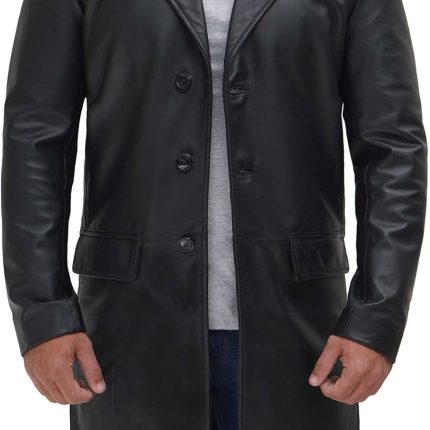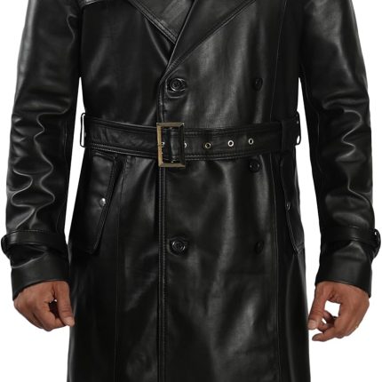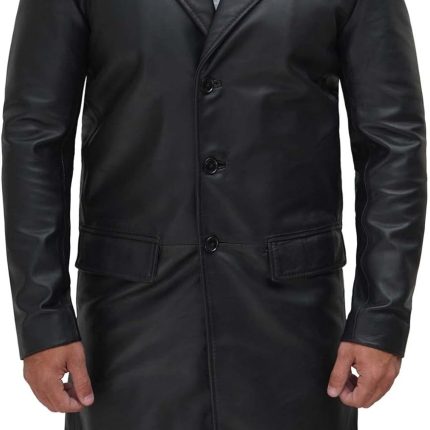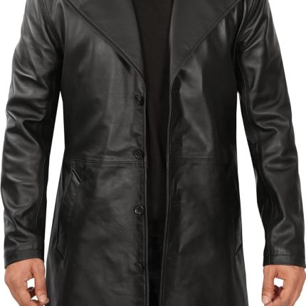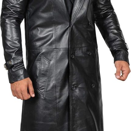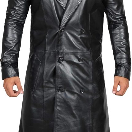 Leather Trench Coat Men – Real Leather Long Overcoat for Mens