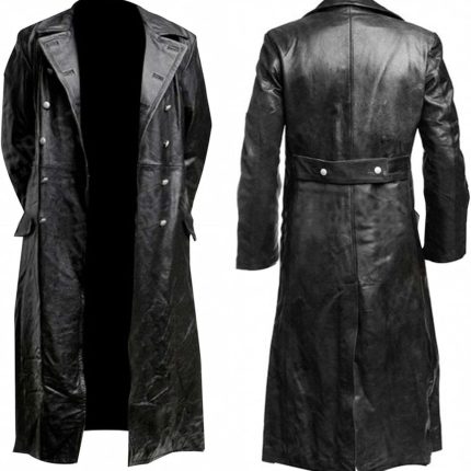 German Classic Officer WW2 Military Uniform Black Leather Trench Coat