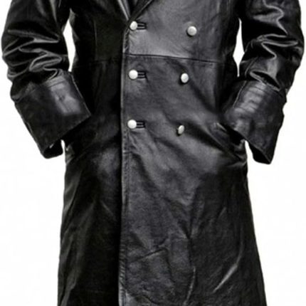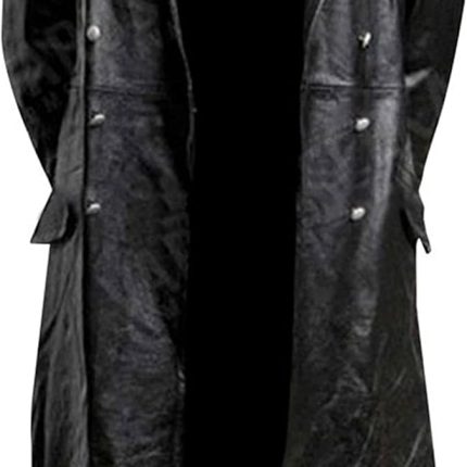 Mens Genuine Leather Trench Coat German Military Officer Uniform Long Black Leather Pea Coat WW2 Trench Coat