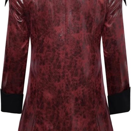 Men‘s PU hooded Leather Steampunk Jacket Medieval Gothic Victorian Vampire Coat Tailcoat Gear Design Adjustable (Red, S)
