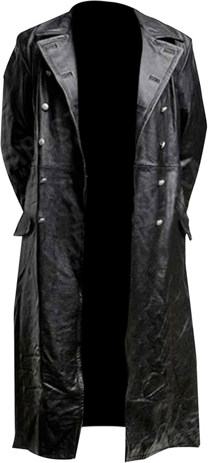 German Classic Officer WW2 Military Uniform Black Leather Trench Coat