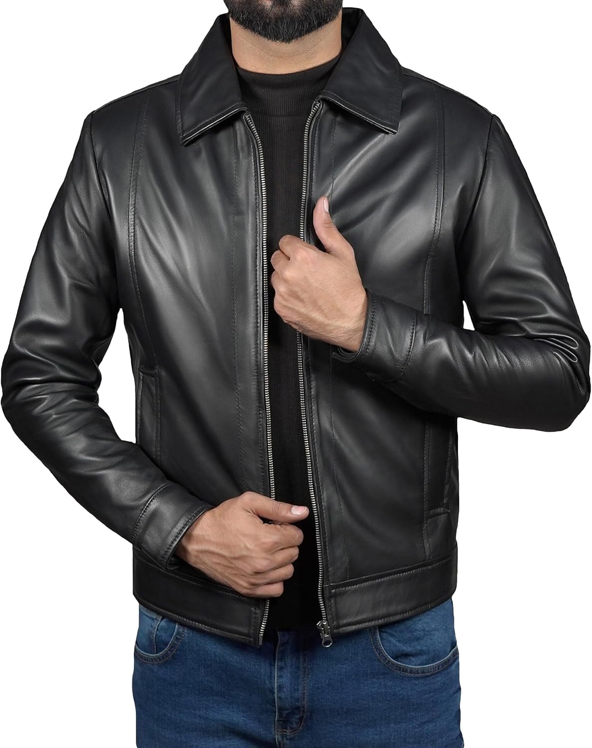 - Classic Modern Design : Black Motorcycle Jacket Men Featuring a Sleek Silhouette with a Zip-Up Front, Shirt Collar, and Minimal Detailing, It Blends Vintage Biker Jacket Men Vibes with Contemporary Fashion. Smooth Front Zipper Closure High-Quality, Rust-Resistant Zipper Provides Smooth Operation and Long-Lasting Performance.