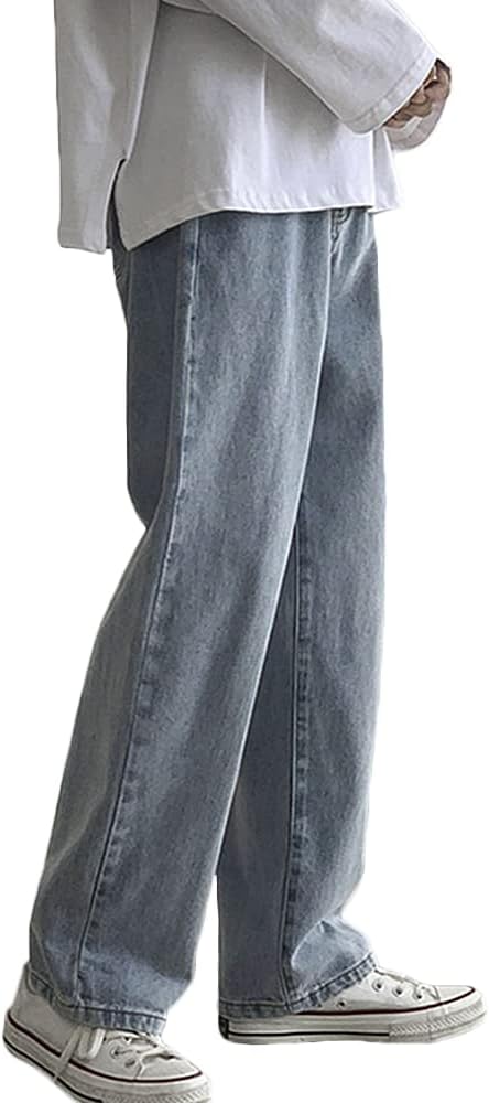 Men’s Loose Fit Straight Leg Denim Jeans Baggy Wide Leg Plain Pants Trousers