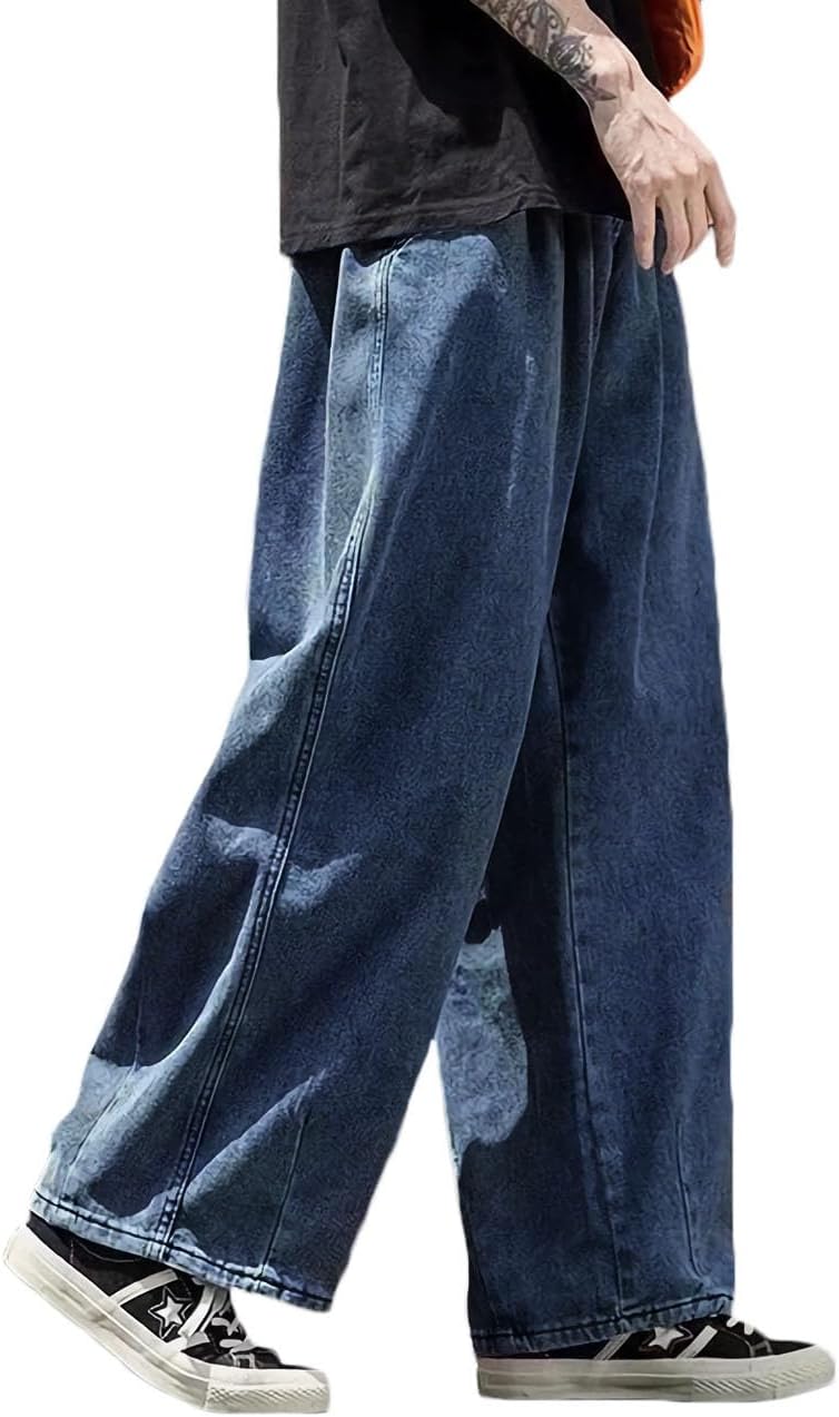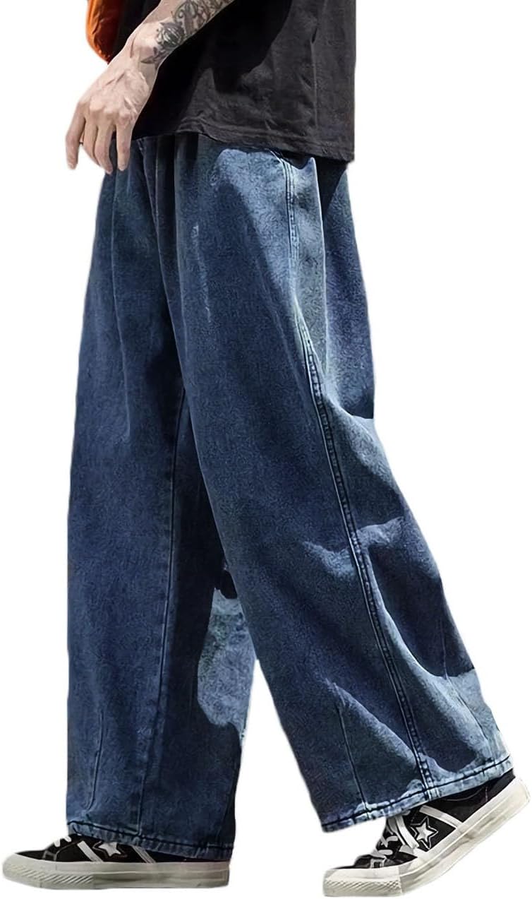 Men’s Loose Wide Leg Jeans Straight Baggy Hip hop Streetwear Skateboard Denim Pants