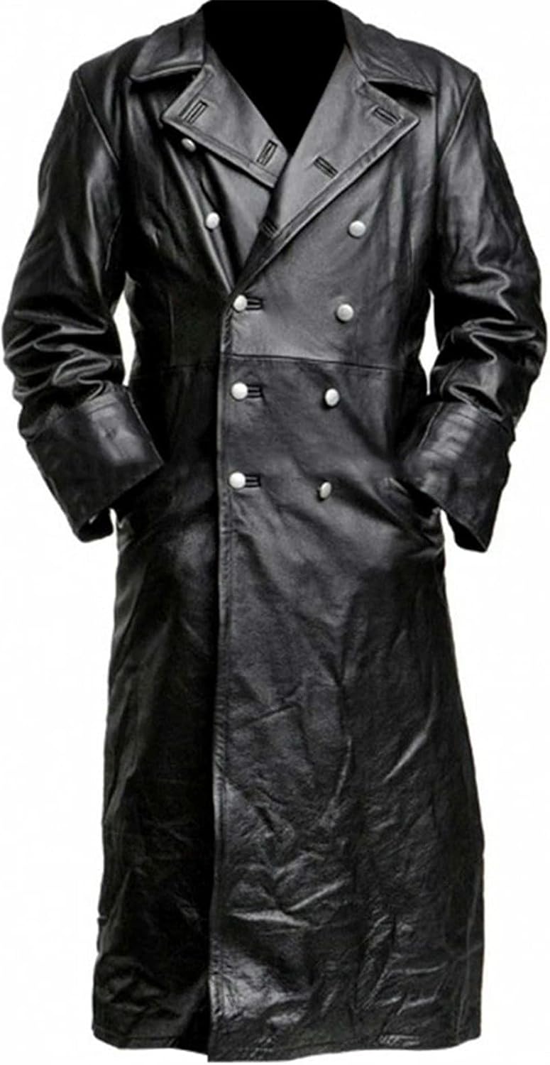 Mens Vintage Classic WW2 Officer Military Uniform Black Leather Trench Coat Jacket Long Trench Coat Motorcycle Jakcet