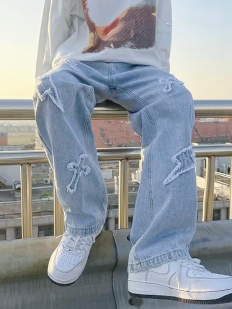 - UNIQUE STYLE: Our vintage-inspired men’s jeans feature an oversize Cross design and wide leg fit, perfect for a or Korean streetwear look.