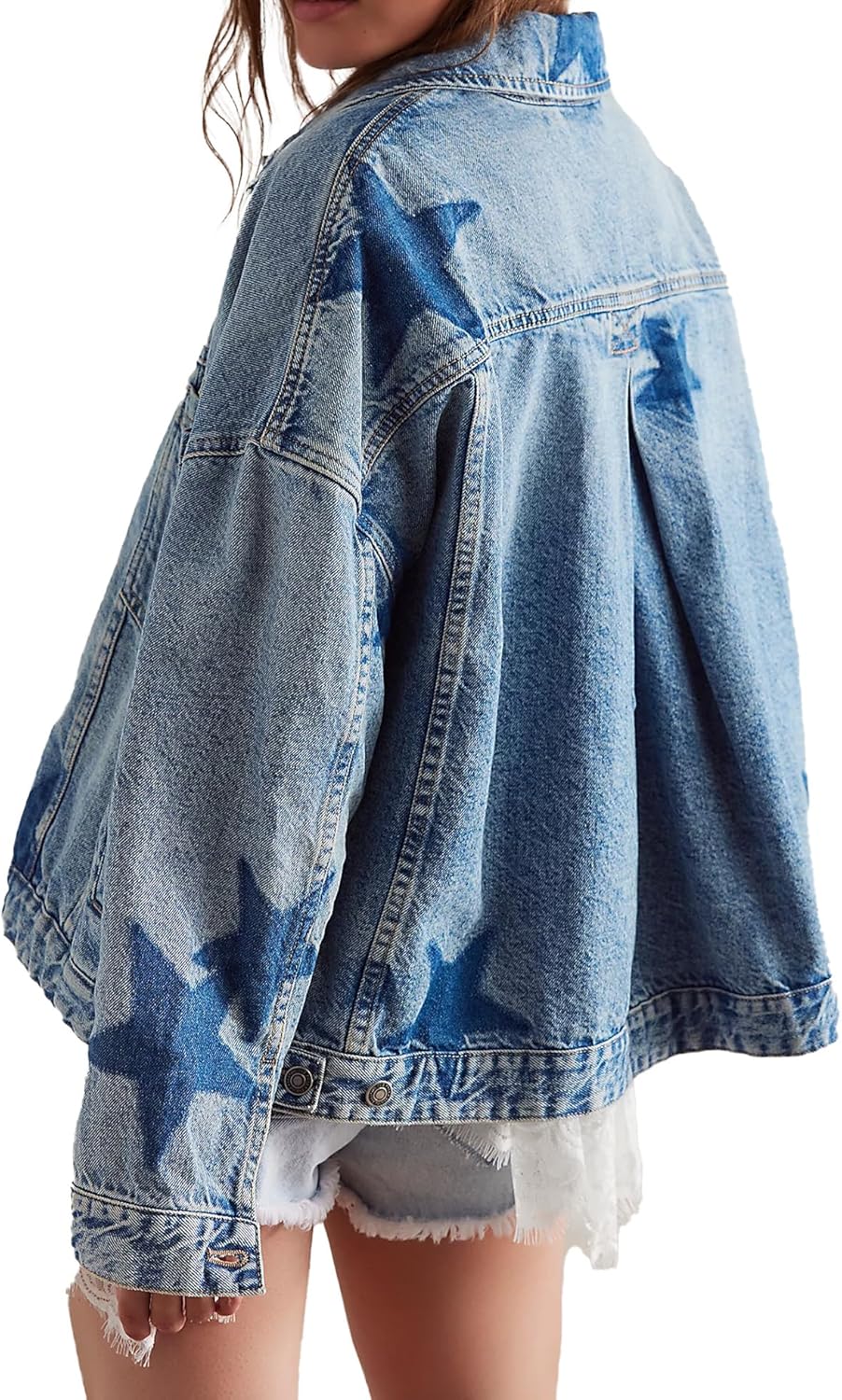 - Unique Design: Take your denim jacket game to the next level with this so cool version, featured in a printed leopard design or star design with dropped shoulders for shape and defined pleating at back for an added special, swingy touch