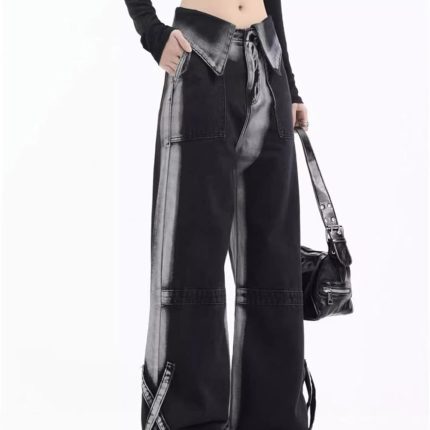 - Feature: Unique Butterfly Embroidery, Harajuku Elements,Stylish Butterfly Patchwork,Front Bleached Butterfly Applique,Baggy Flared Jeans,Front Stitching Design,Classic Retro Blue and Black ,Low Rise/Mid Rise,Bottom Tassel Edge,Relaxed fit,Zipper and Button Closure.