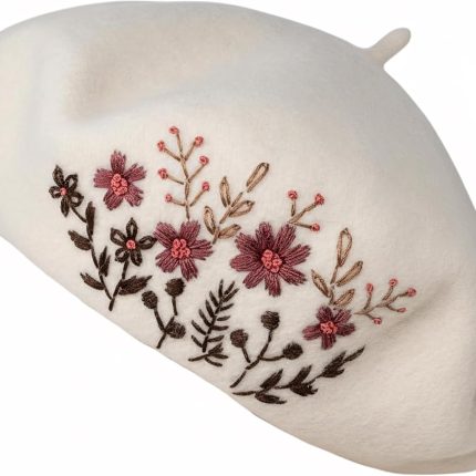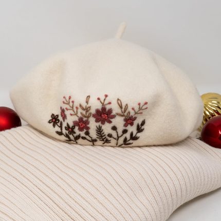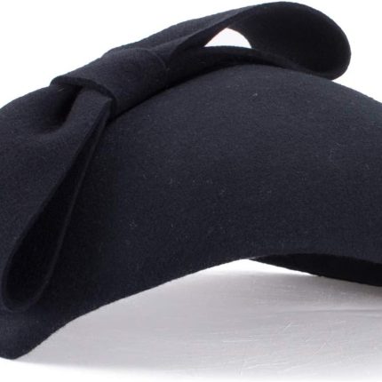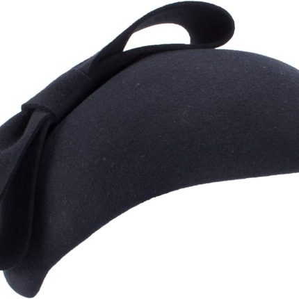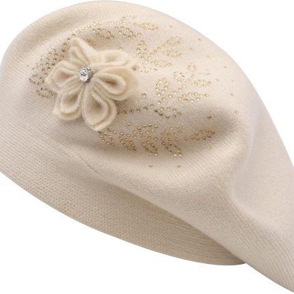 Womens Vintage Style Velvet Beret Floral Hat Chic Cap (Navy Blue)